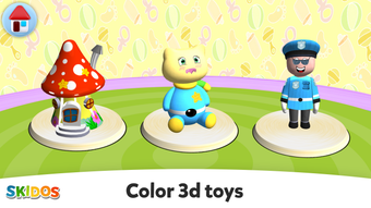 เกมระบายสี: สำหรับเด็กอายุ 2-6 ปี เป็นเกมระบายสี 3 มิติที่เพิ่มความรู้สึกการเรียนรู้โดย Skidos Learning Private Limited ออกแบบสำหรับเด็กอายุ 2-5 ปี เกมนี้ช่วยให้เด็กสามารถแสดงความคิดสร้างสรรค์ของตนเองได้โดยการระบายสีกว่า 60 ของเล่นที่แตกต่างกันที่ทำจากวัสดุต่าง ๆ เช่น ไม้ ผ้า และเซรามิก ด้วยเครื่องมือทาสีหลากหลายและสติกเกอร์ที่สามารถปรับขนาดได้ เด็กจะมีโอกาสในการแสดงความคิดสร้างสรรค์ได้ไม่จำกัด นอกจากนี้เกมยังมีการตั้งค่าสำหรับเด็กเล็กพร้อมการหมุนอัตโนมัติทำให้ง่ายต่อการนำทางของเด็กอายุน้อย